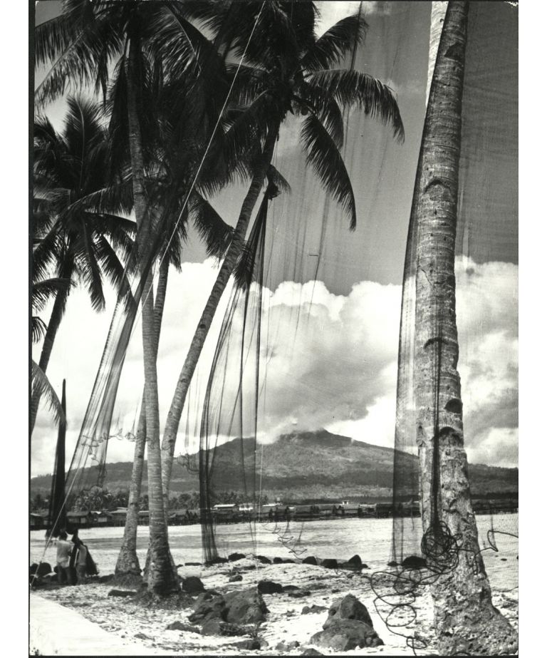 34. PHILIPPINES: Sulu archipelago. Scene on the island of Jolo. The fishermen hang their nets on the palm trees to dry the nets. Sammer 9980.