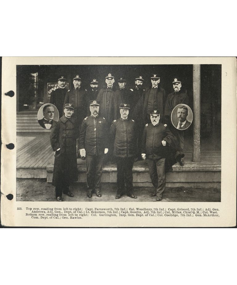 323. Top row, reading from left to right: Capt. Farnsworth, 7th Inf.; Col. Woodbury, 7th Inf.; Capt. Grisord, 7th Inf.; Adj. Gen. Andrews, Adj. Gen., Dept. of Cal.; Lt. Eckerson, 7th Inf.; Capt. Goodin, Adj. 7th Inf; Col. Miller, Chief Q.M.; Col. West....
