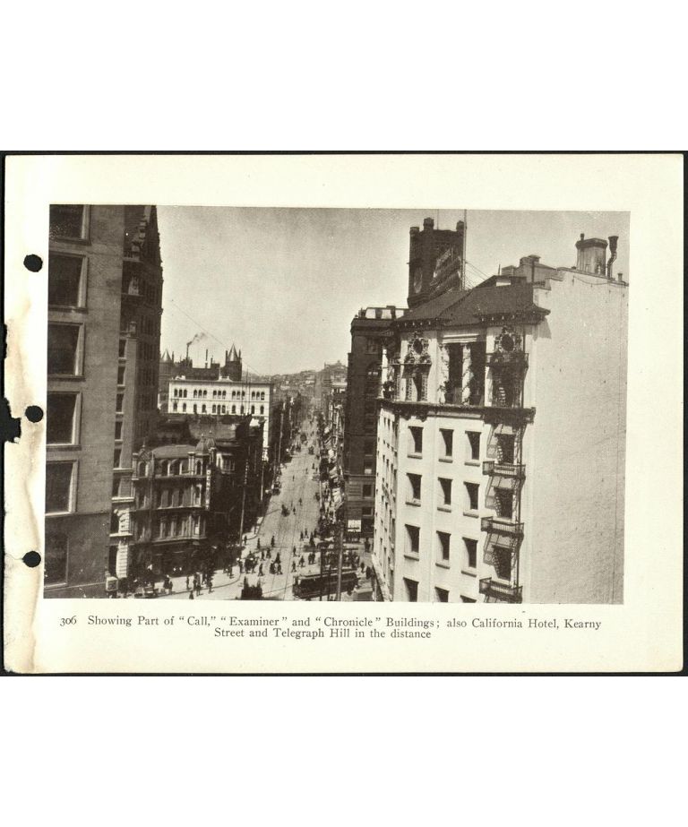 306. Showing part of "Call," "Examiner" and "Chronicle" Buildings; also California Hotel, Kearny Street and Telegraph Hill in the distance.