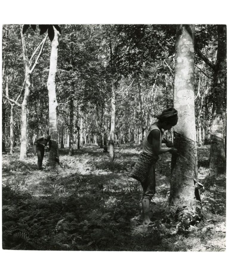 29. PHILIPPINES, Basilan Island: Tapping rubber trees. E 1214.