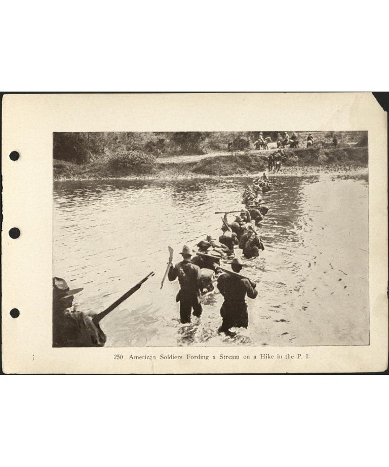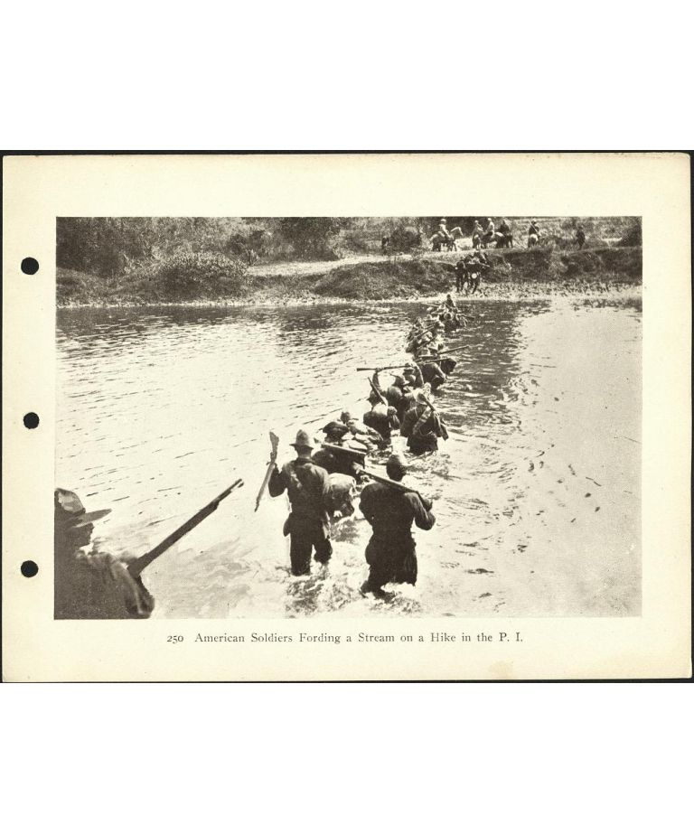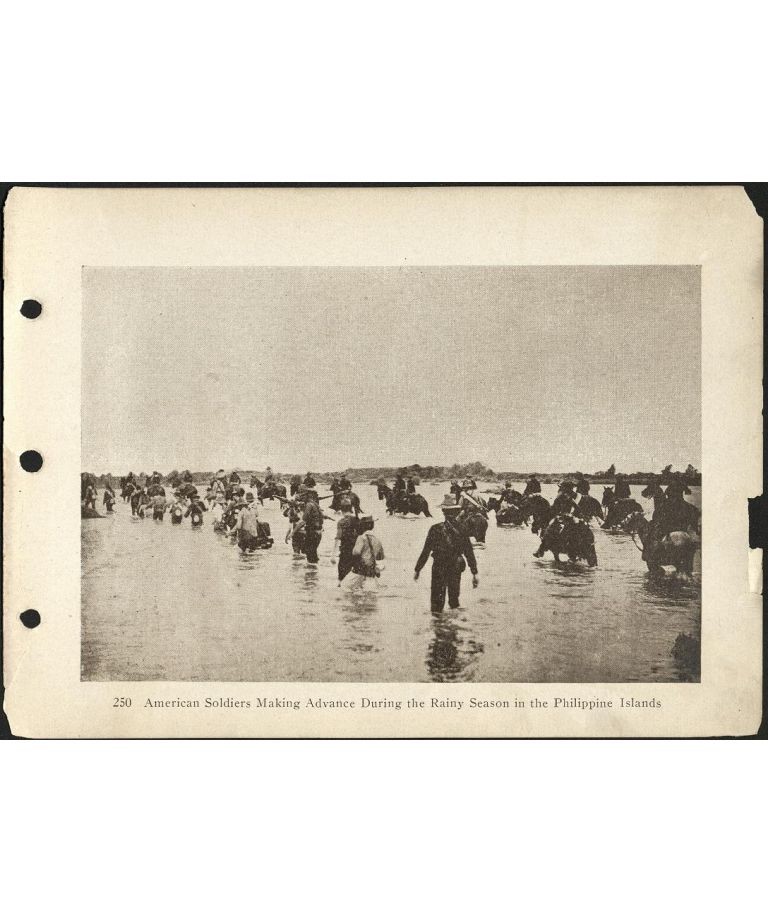 250. American soldiers making advance during the rainy season in the Philippine Islands.