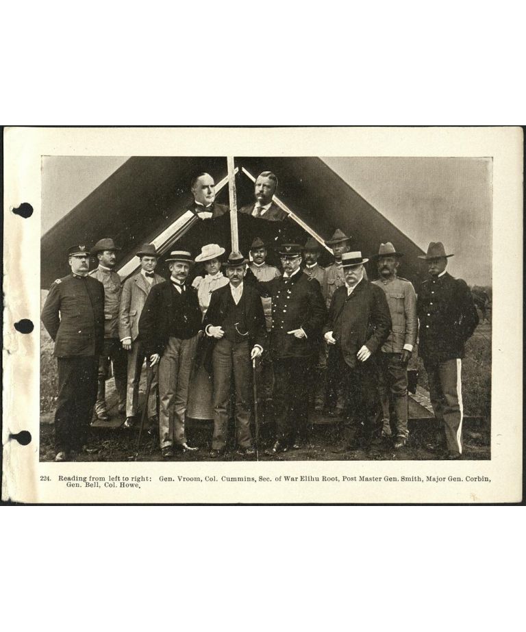 224. Reading from left to right: Gen. Vroom, Col. Cummins, Sec. of War Elihu Root, Post Master Gen. Smith, Major Gen. Corbin, Gen. Bell, Col. Howe.