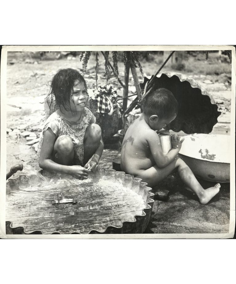 21. PHILIPPINES - Children. Young sister keeps a wathcful eye on her brother near their Manila home. J-1436.
