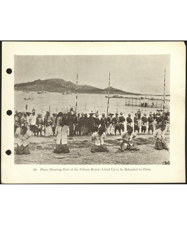 187. Photo showing part of the fifteen Boxers lined up to be beheaded in China.