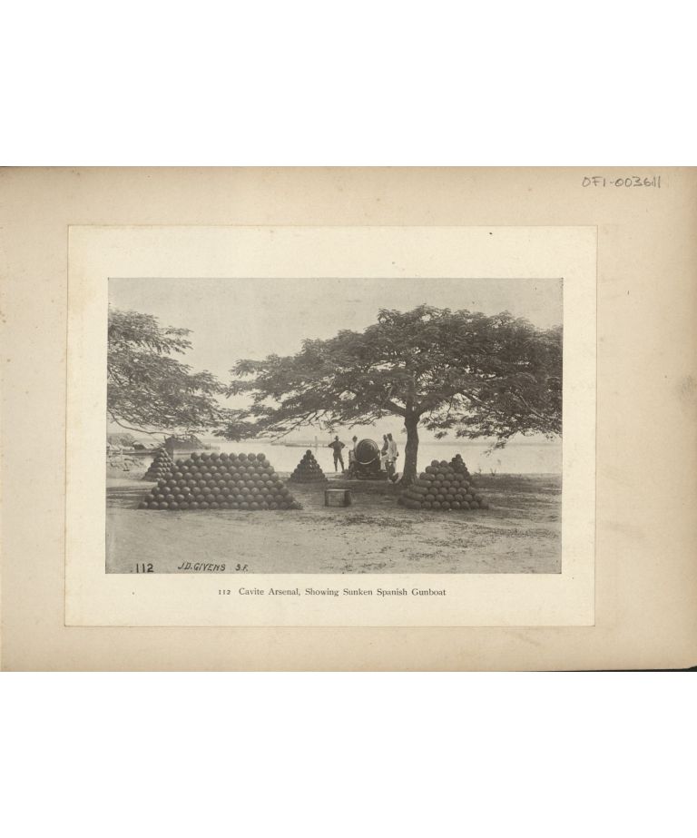 112. Cavite Arsenal, showing sunken Spanish gunboat [the cruiser Don Antonio de Ulloa].