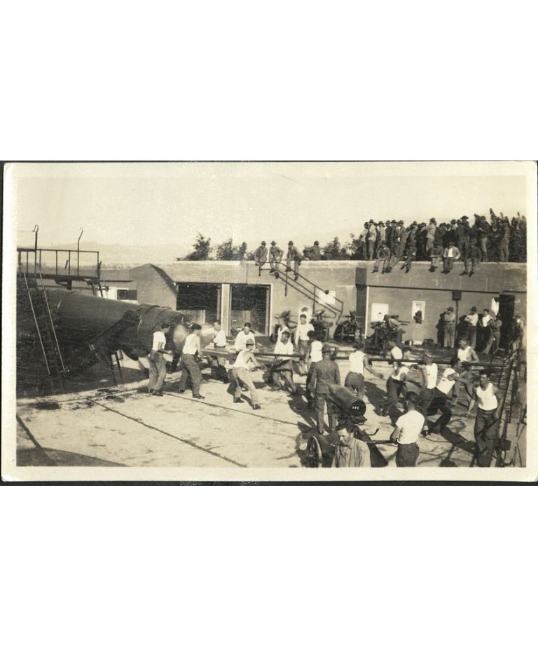 {Untitled - Artillery ("disappearing gun") loading - Fort Mills or Fort Wint].