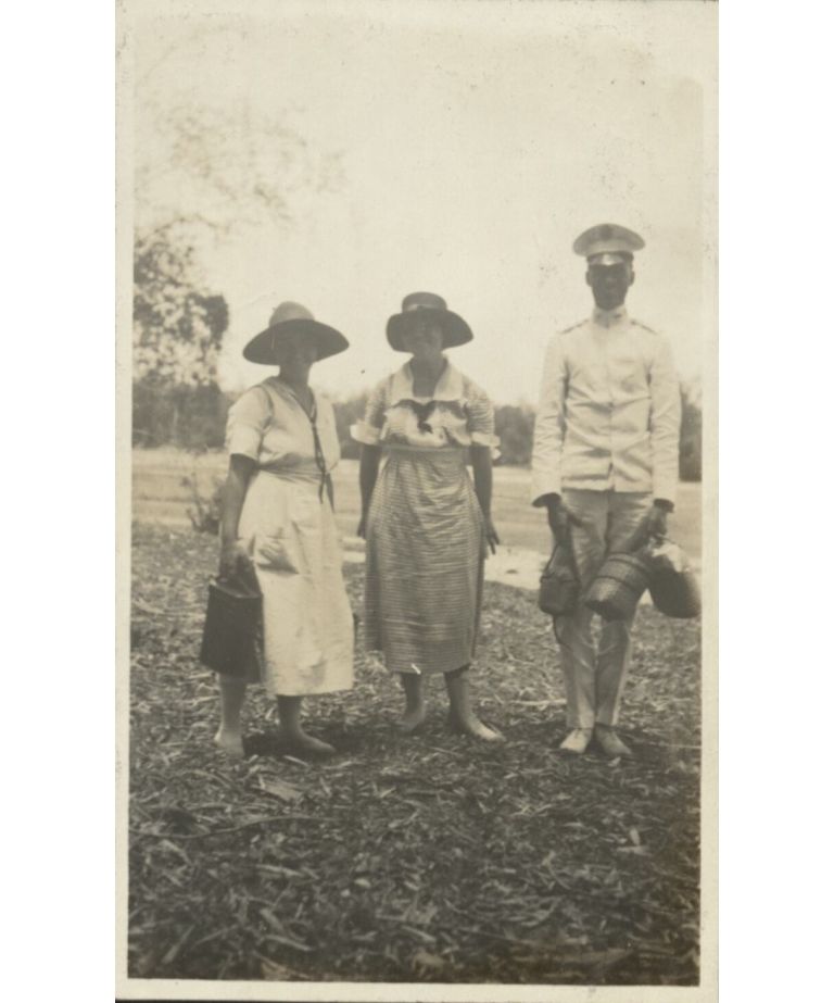 [Untitles -- U.S. Navy officer poses with two American military wives].