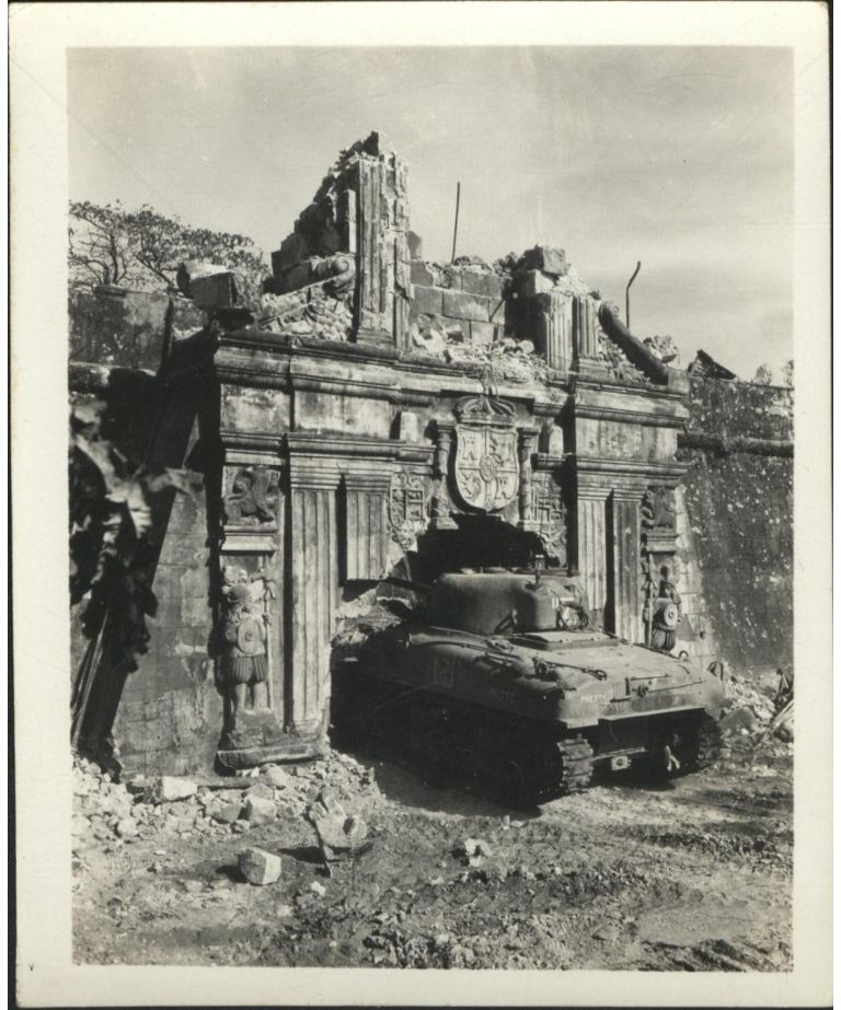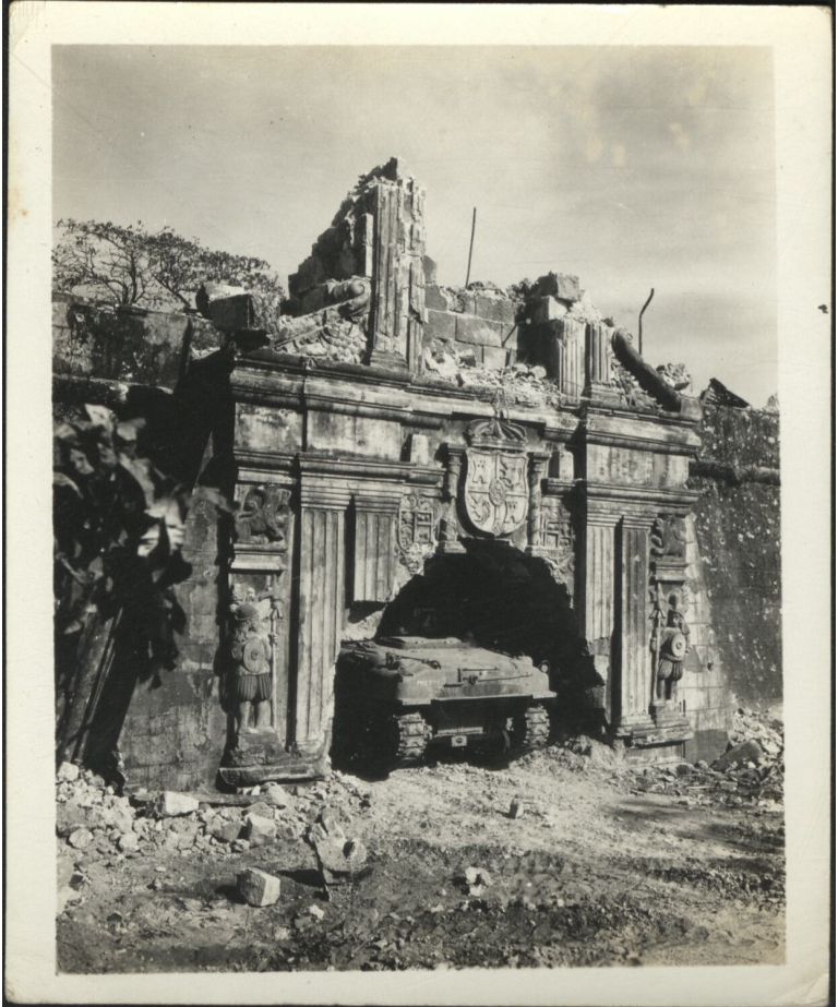[Untitled - Urban warfare in Manila during liberation: U.S. tank enters the battered gate at Fort Santiago. February 1945].