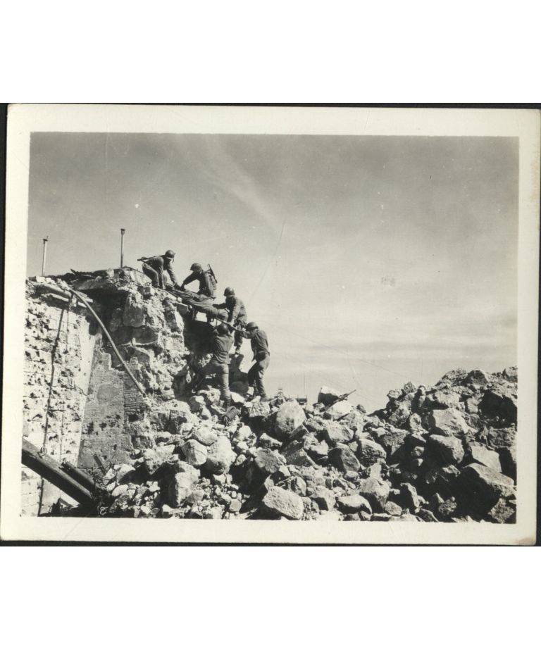 [Untitled - Urban warfare in Manila during liberation: Evacuating a casualty in Intramuros, February 1945].