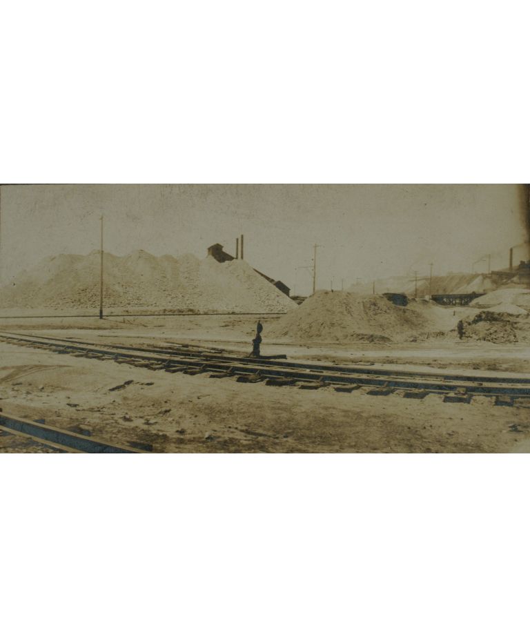 [Untitled - Railroad tracks covered with dirt and big boulders after a flood or landslide].