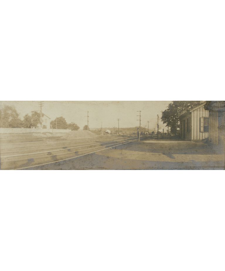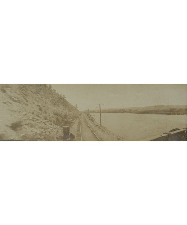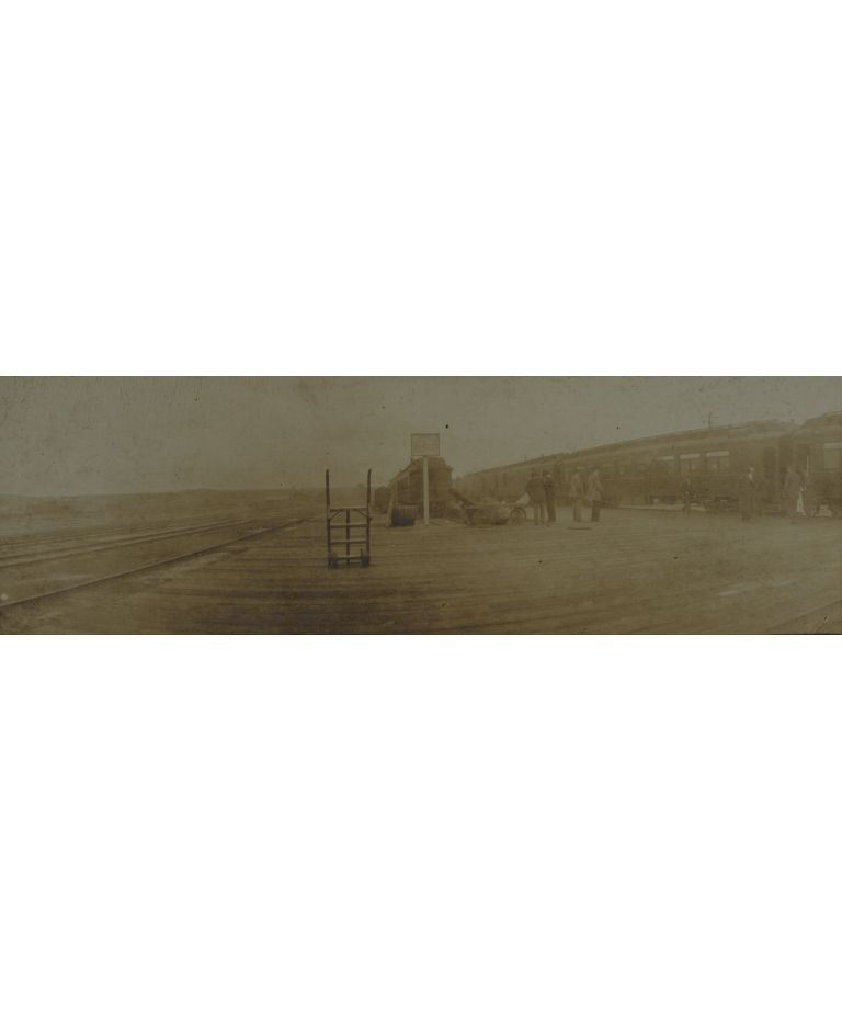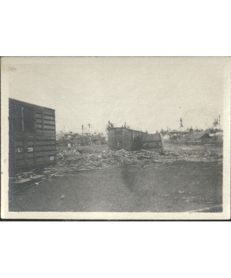[Untitled - Railroad cars damaged and toppled by flood or landslide debris].