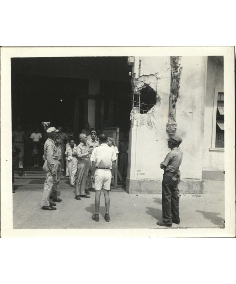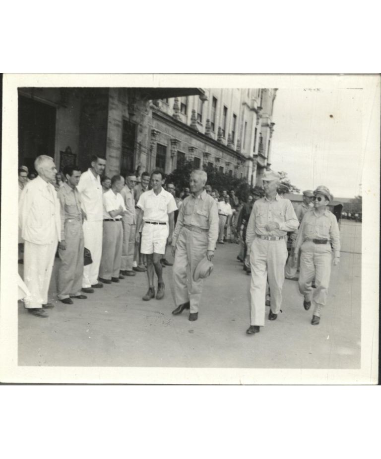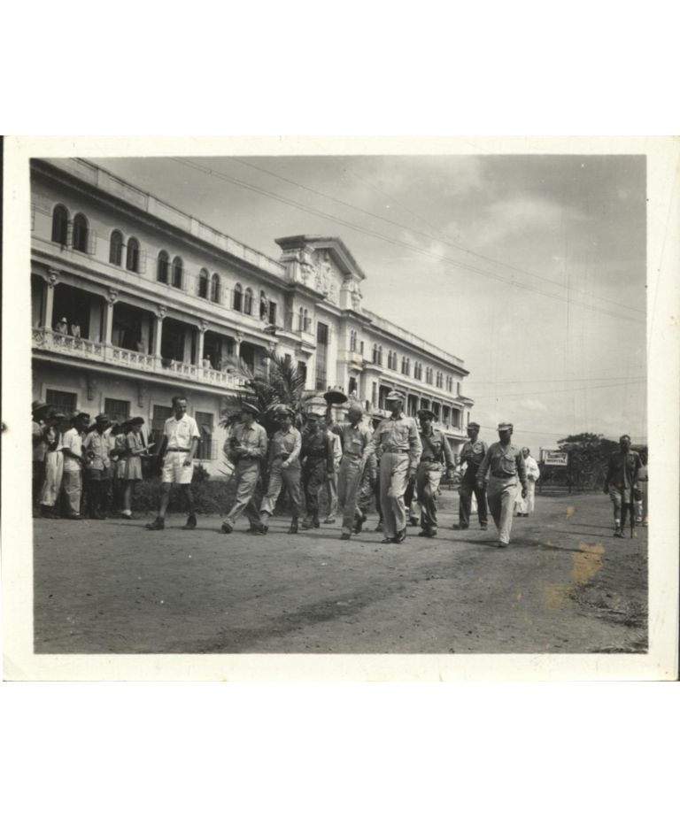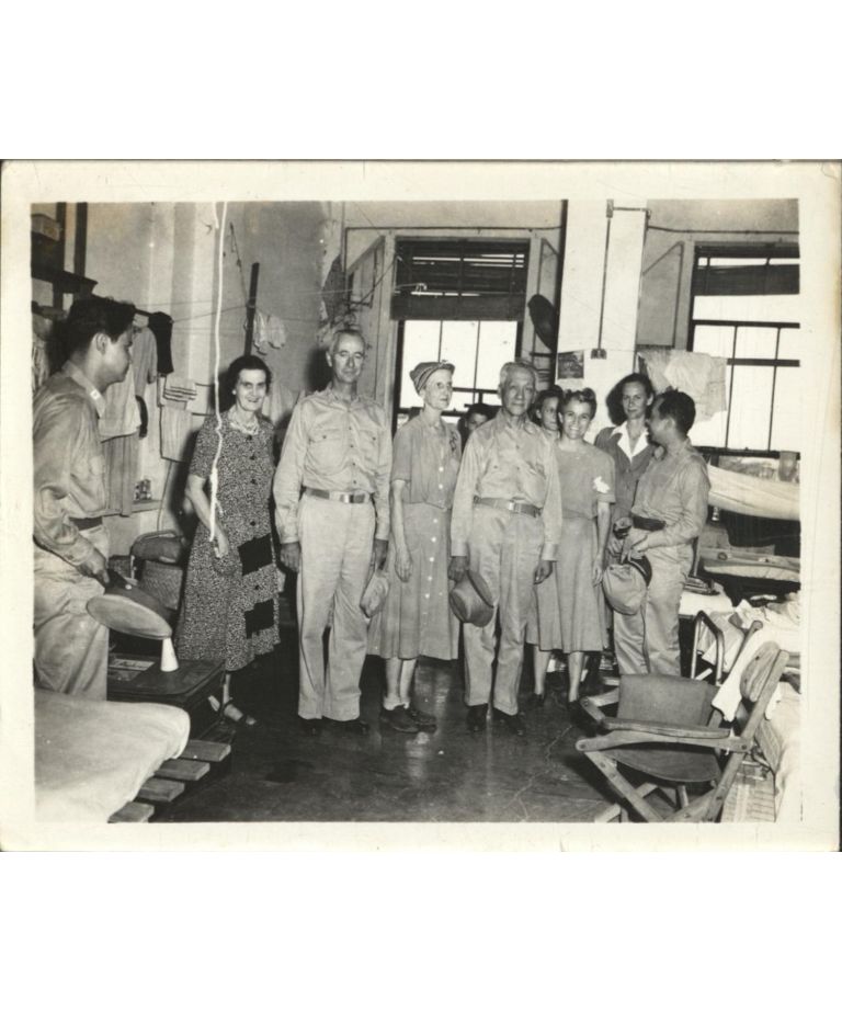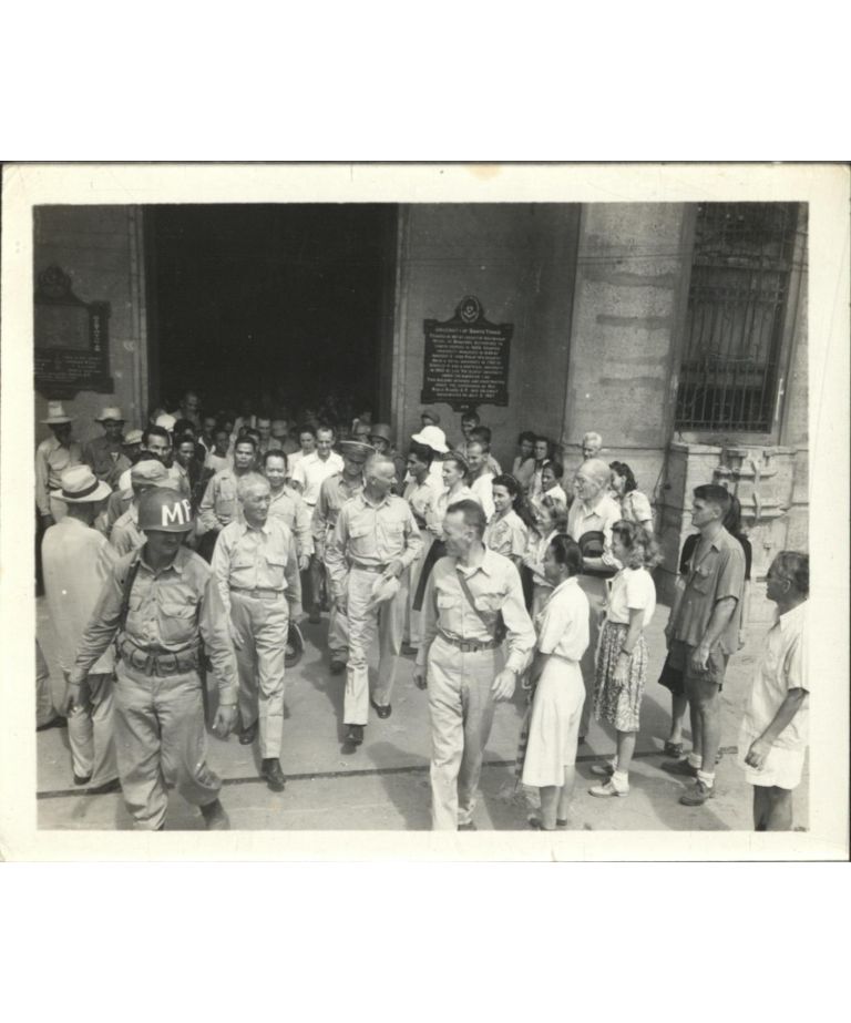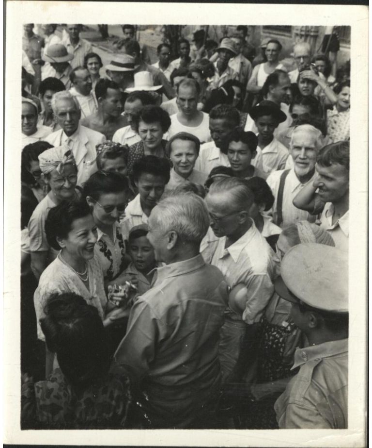 [Untitled - Philippine president Sergio Osmena greets freed detainees, tours Santo Tomas Internment Camp].