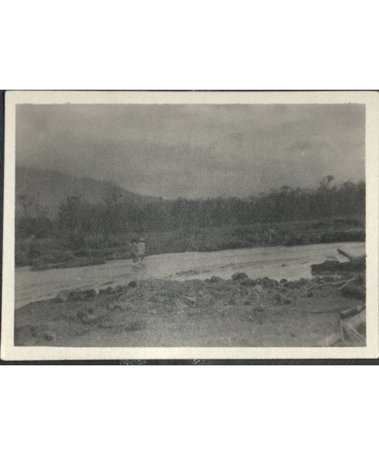 [Untitled - Men wade in stream with dirt and rocks after a flood or landslide].