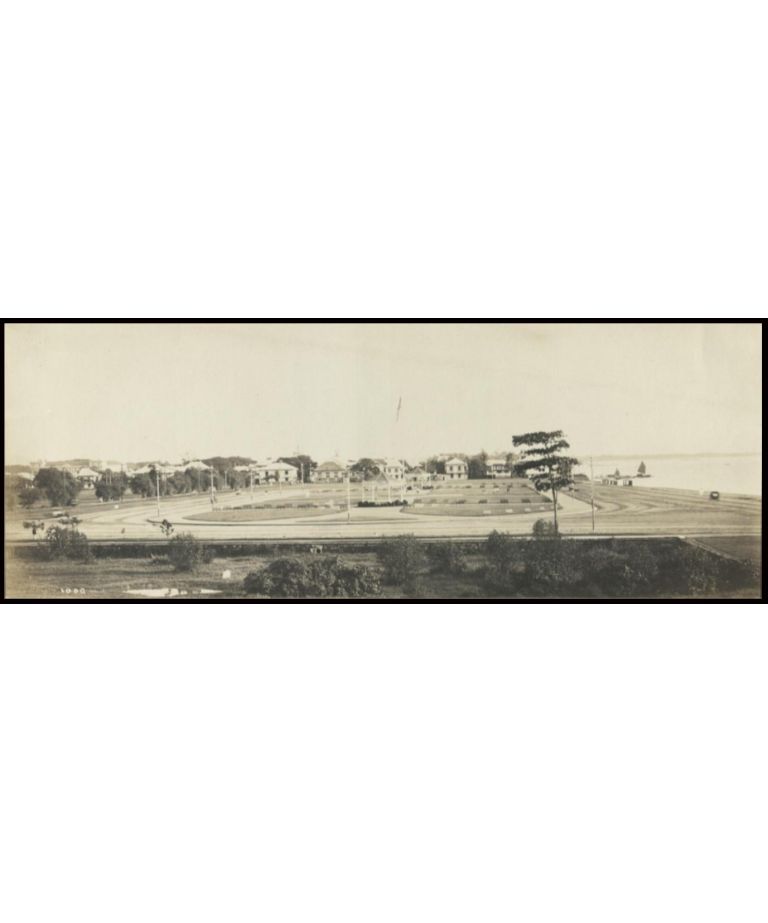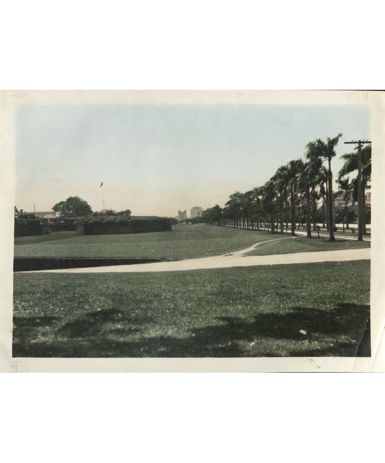[Untitled - Looking south at Santa Lucia Gate, Bonifacio Ave. on right, Intramuros left, Luneta Hotel and University Club Apartments in distance].