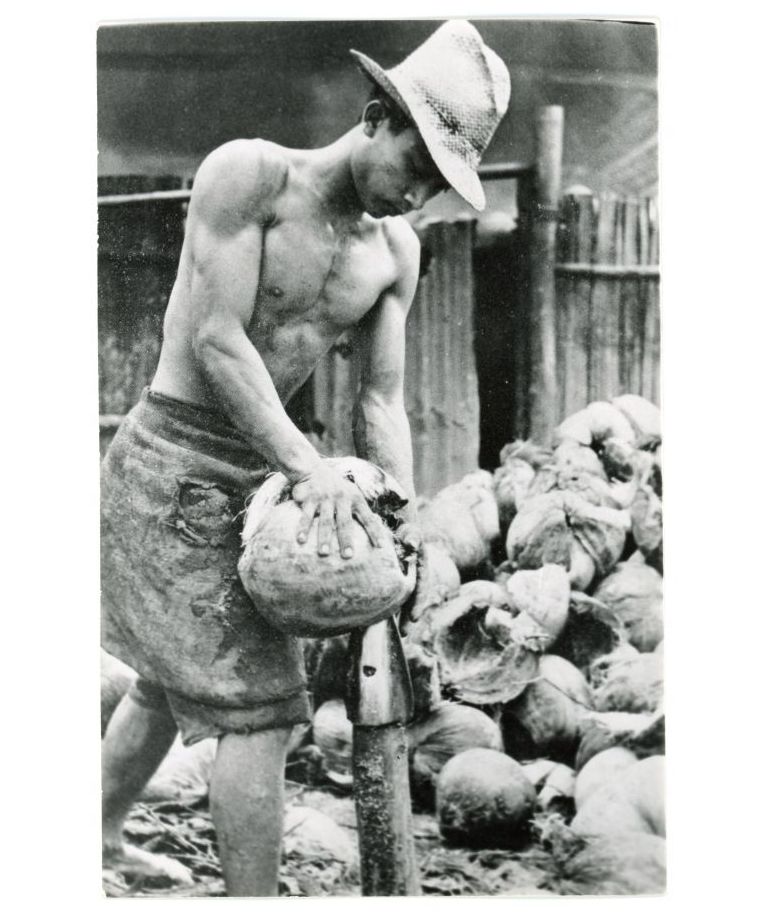 [Untitled - Filipino husking coconuts].