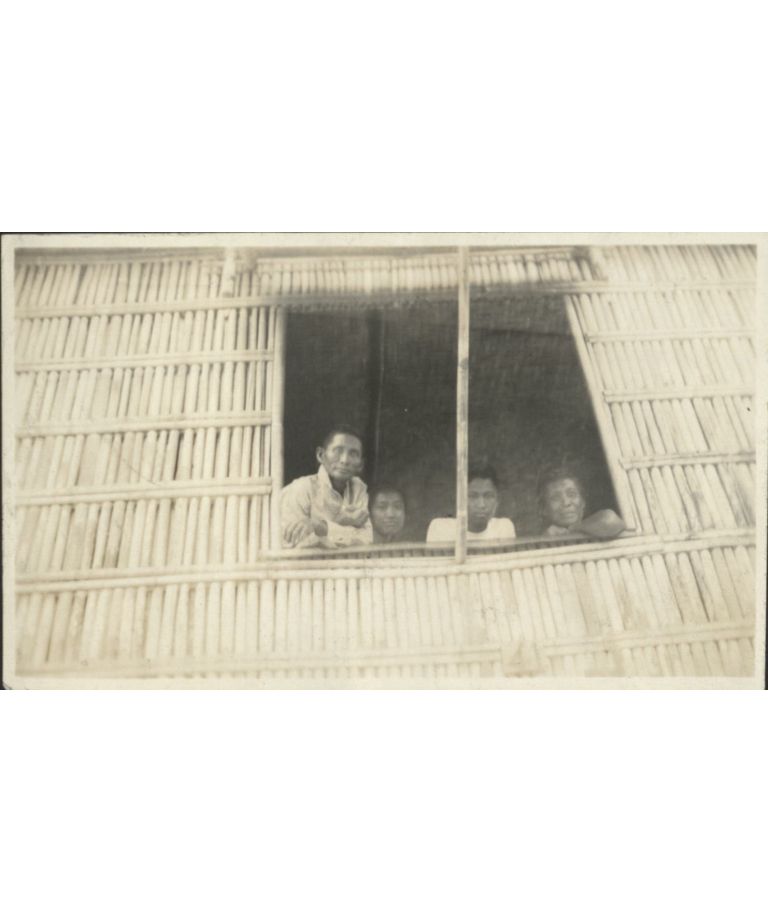 [Untitled - Filipino family looks out window of their bamboo house].