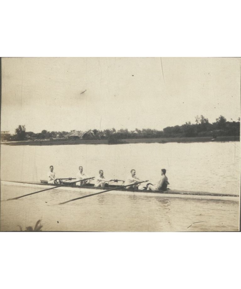 [Untitled - Expatriates rowing in a four-man scull plus coxswain].