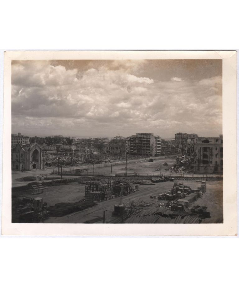 [Untitled - Ermita destruction after Liberation of Manila, 1945 - ruins of Central United Methodist Church on left]