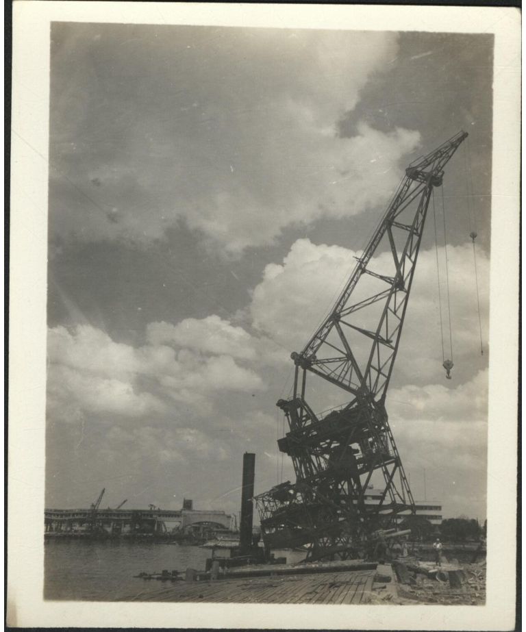[Untitled - Destruction of Manila during liberation: Damaged cargo crane, Port District, February 1945].