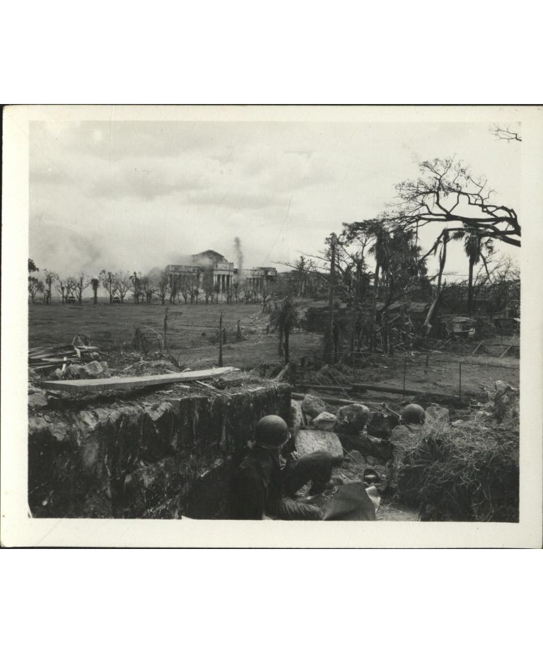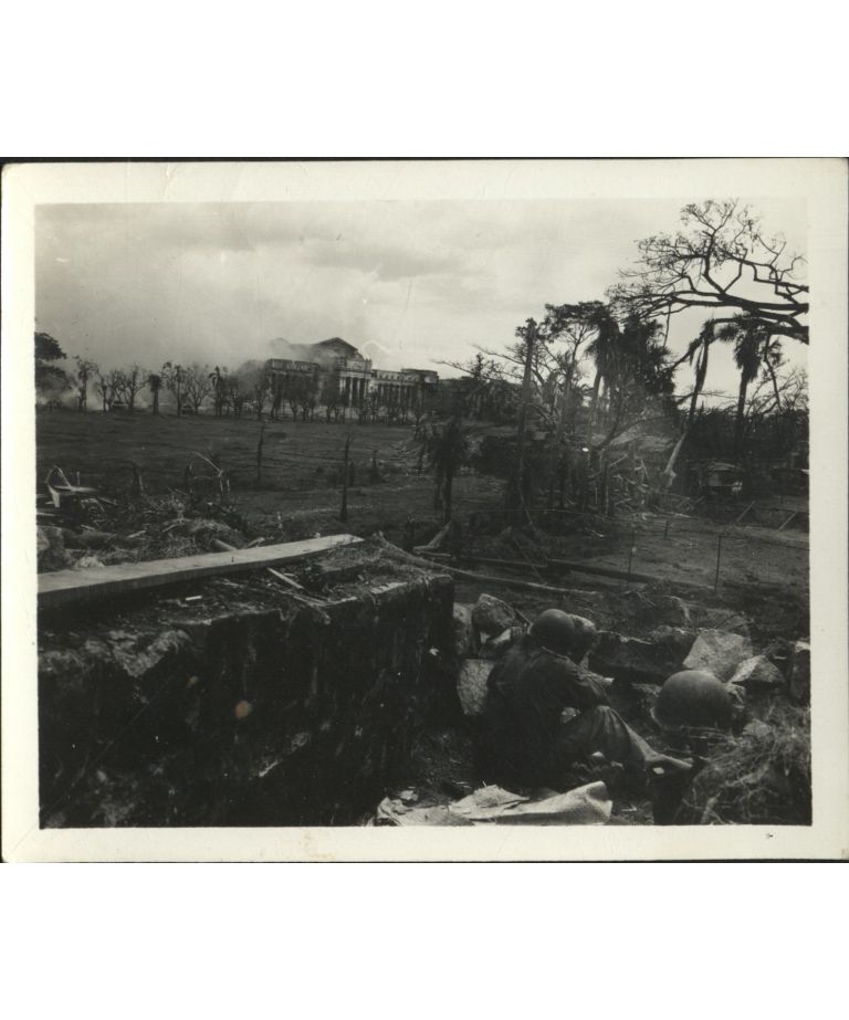 [Untitled - Destruction in Manila during liberation: Artillery shelling City Hall and the Legislative Building, February 1945].