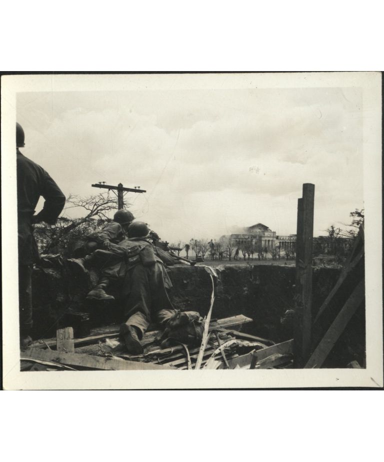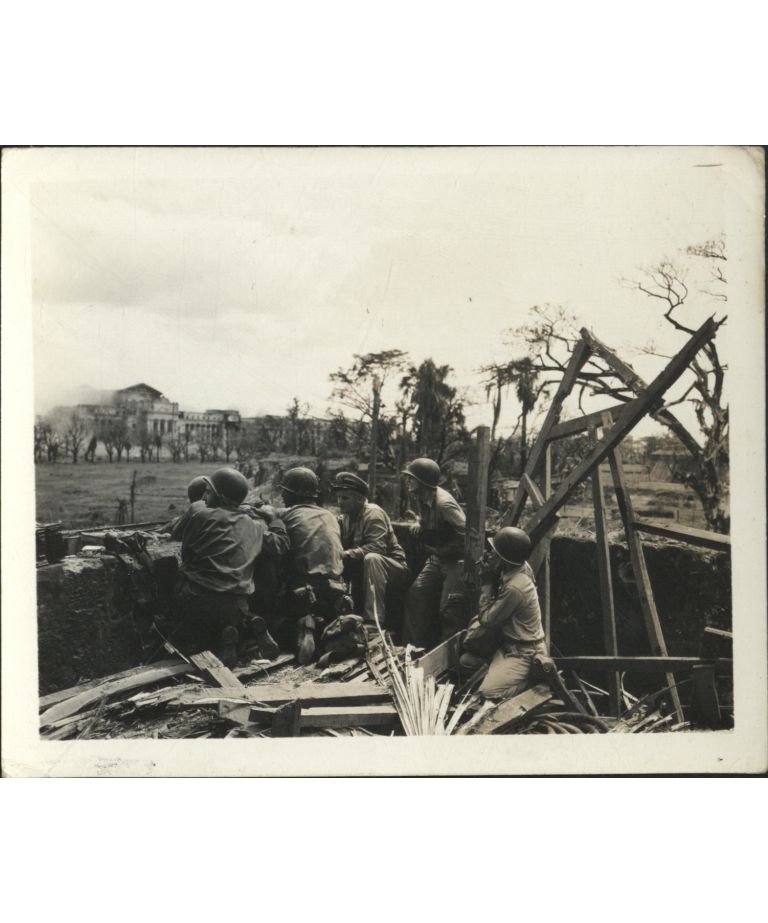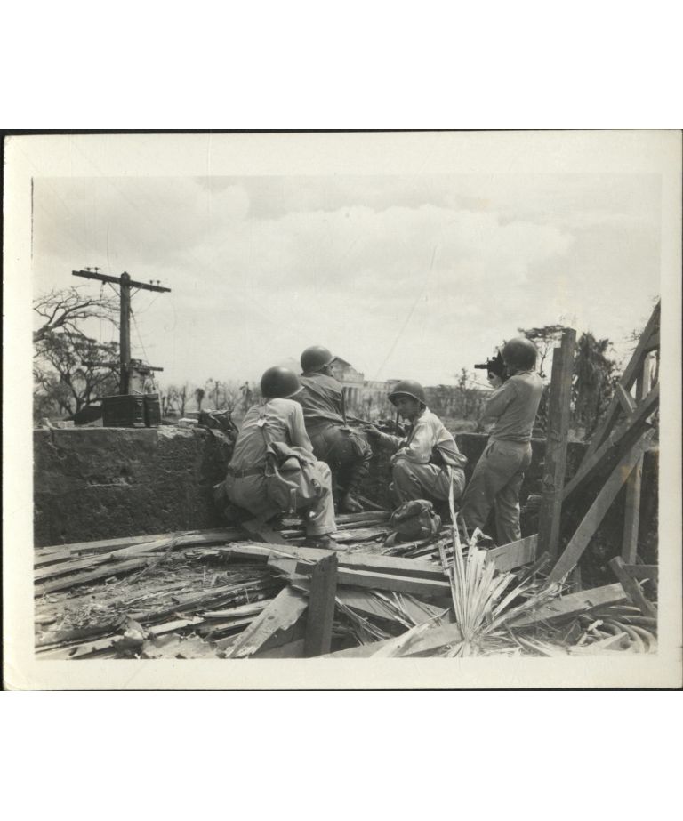 [Untitled - Destruction in Manila during liberation: U.S. soldiers advance through rubble of detroyed buildings, February 1945].