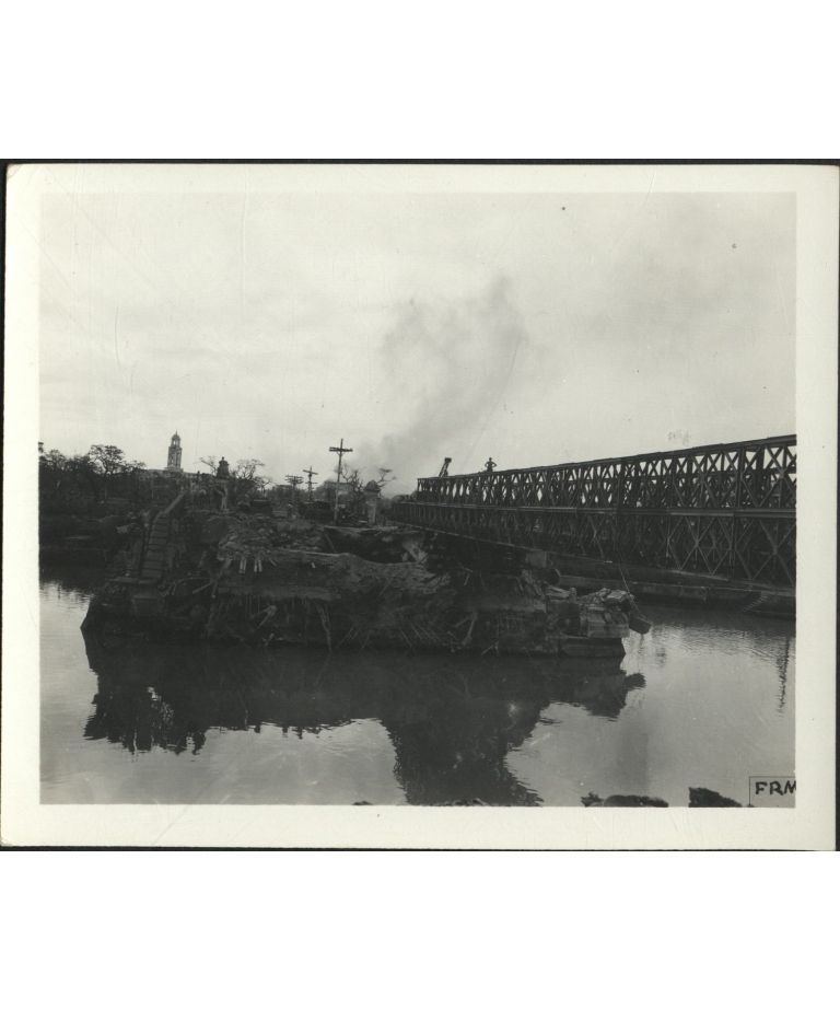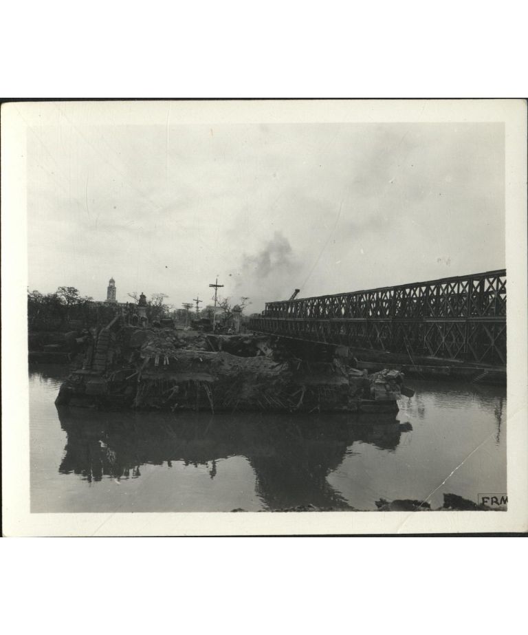 [Untitled - Destruction of Manila during liberation: Building the temporary Bailey bridge across Jones Bridge, February 1945].