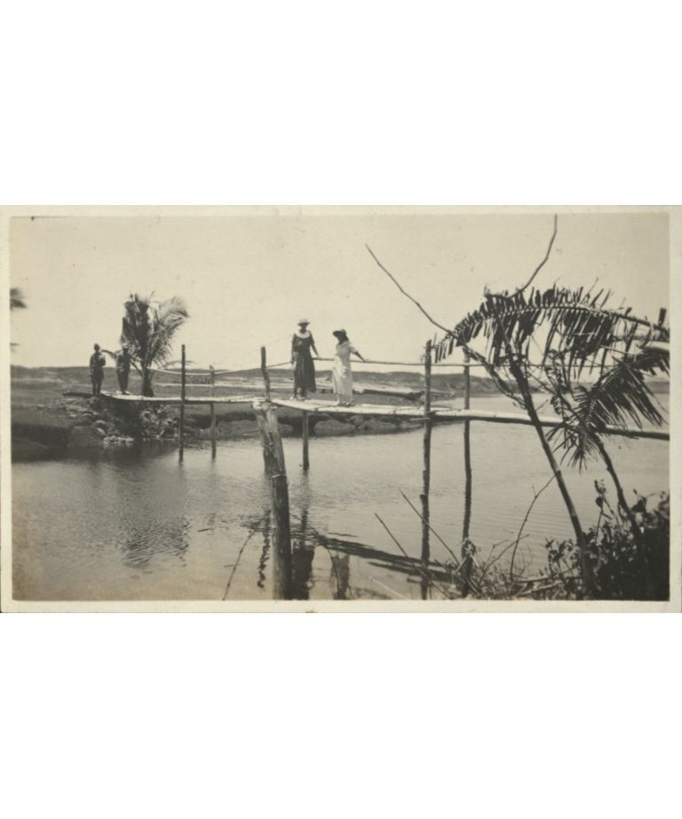 [Untitled - Crossing a bamboo footbridge].