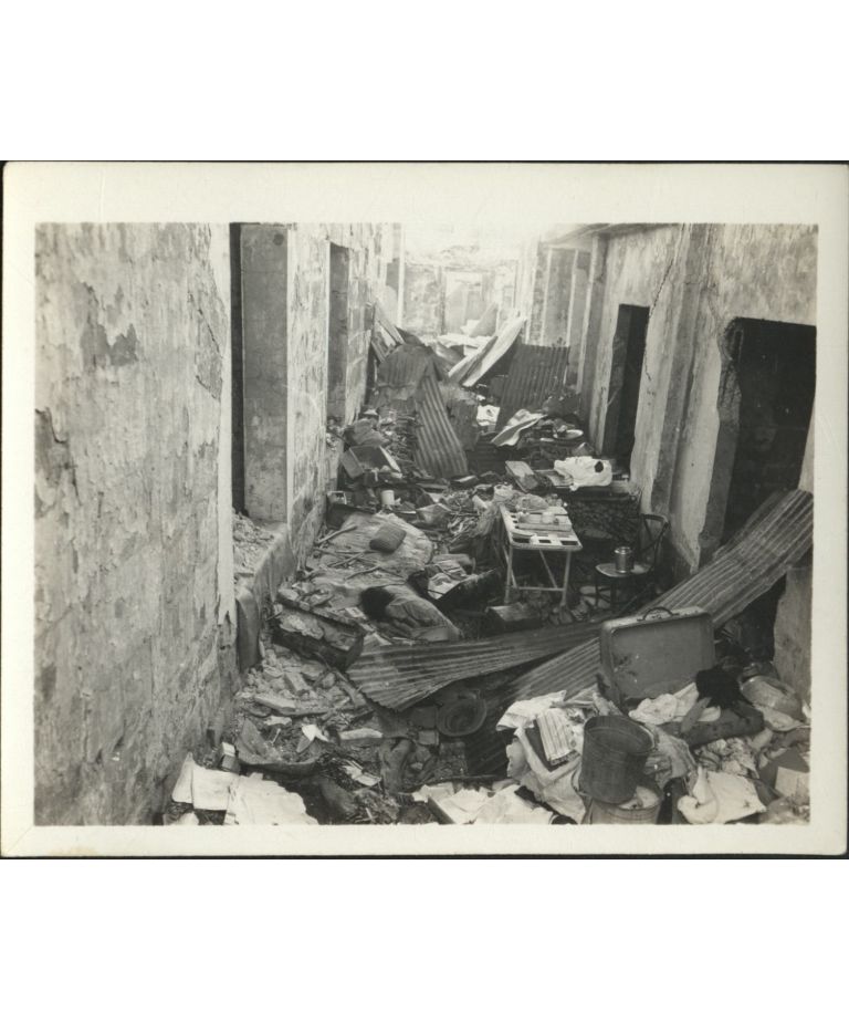 [Untitled - Death and destruction in Manila during liberation: Looted possessions and a body in an alley, February 1945].