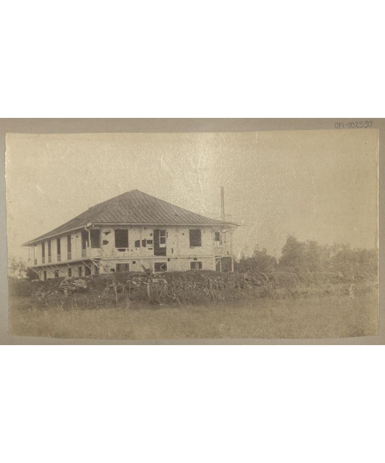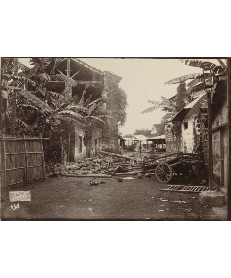 [Untitled - Cocoanut [Coconut] breastworks thrown up in the streets at Pasig. Also destruction by artillery fire].