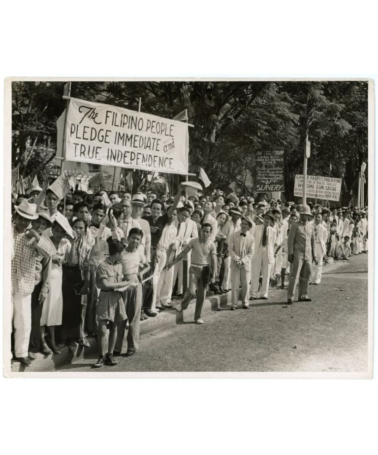 [Caption missing - Crowds greet the arrival of High Commissioner Francis B. Sayre in 1939 amid debate over independence terms].