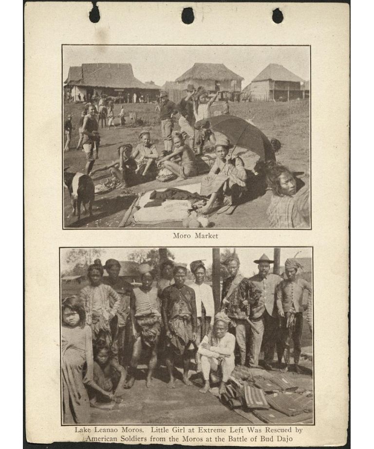 (Top) Moro market / (Bottom) Lake Leanao [Lanao] Moros. Little girl at extreme left was rescued by American soldiers from the Moros at the Battle of Bud Dajo.