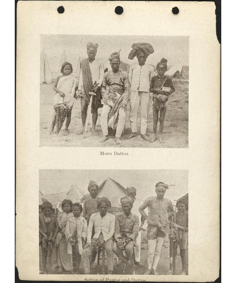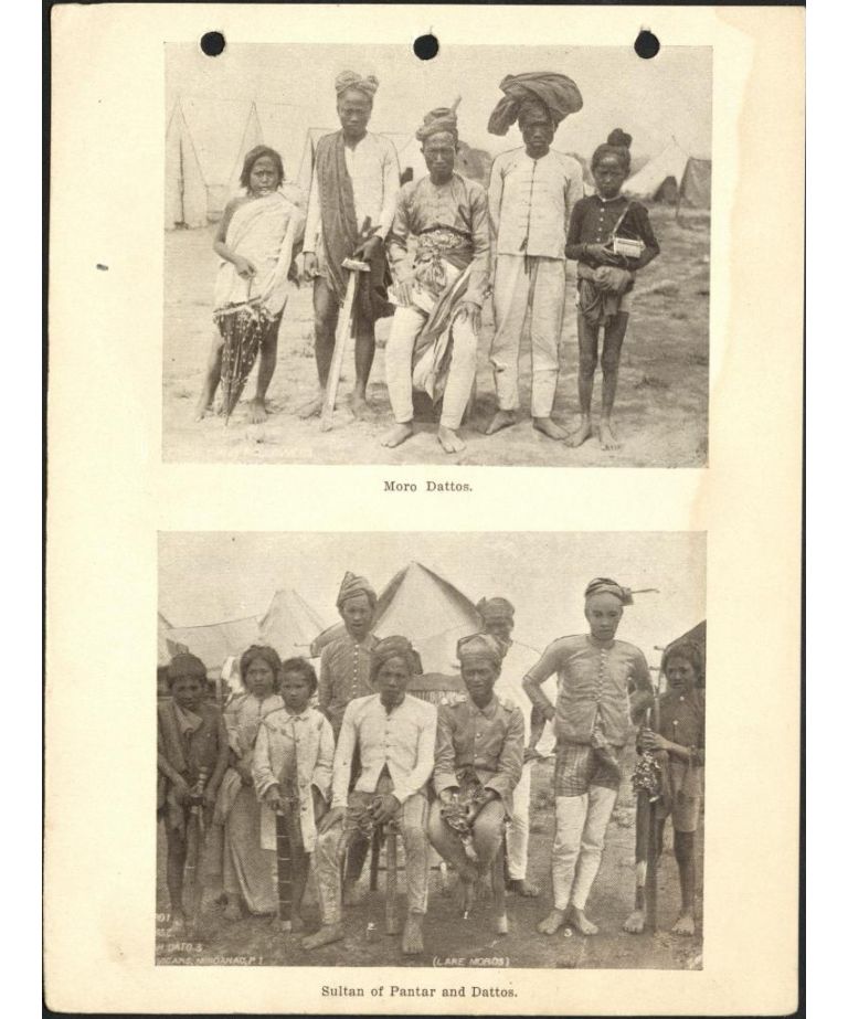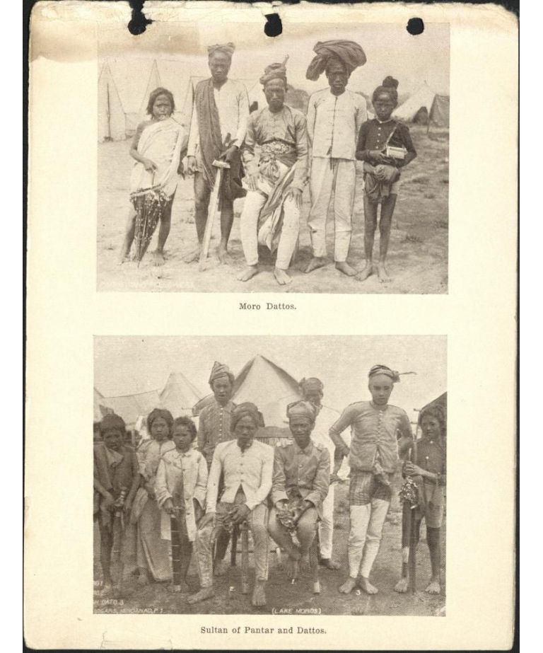 (Top) Moro dattos. (Bottom) Sultan of Pantar and dattos. Camp Vicars, Lake Lanao.