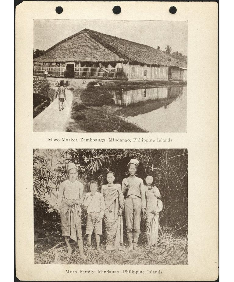 (Top) Moro market, Zamboanga, Mindanao, P. I. / (Bottom) Moro family, Mindanao, P. I.