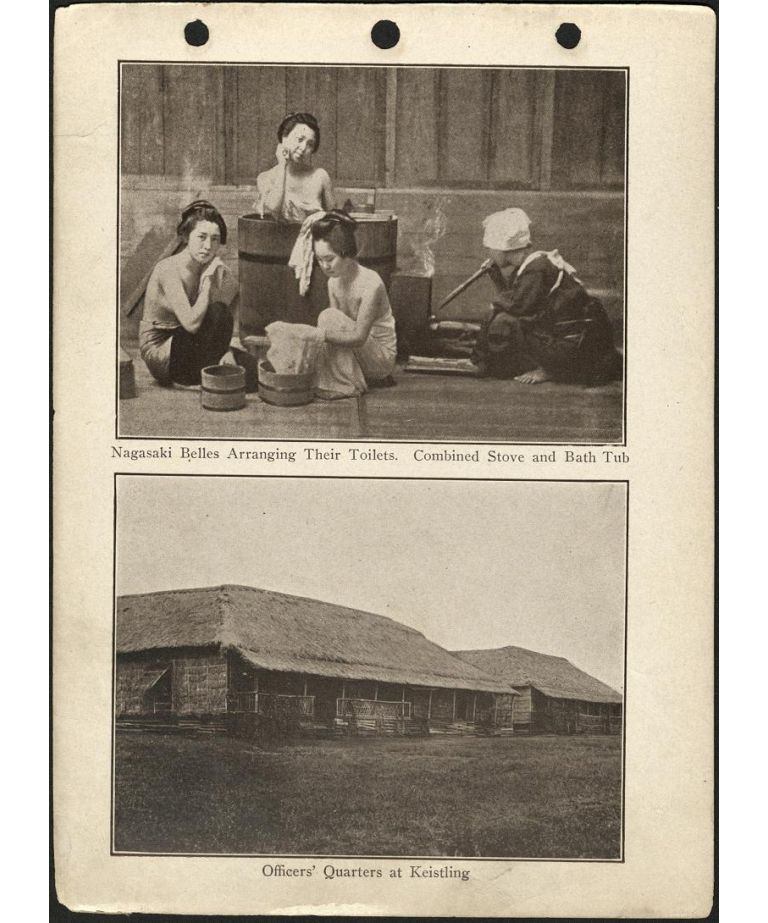 (Top) Nagasaki belles arranging their toilet. Combined stove and bath tub / (Bottom) Officers' quarters at Keistling.