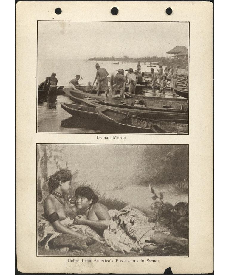 (Top) Leanao [Lake Lanao] Moros. / (Bottom) Belles from America's possessions in Samoa.