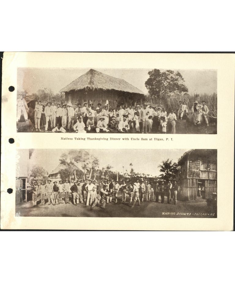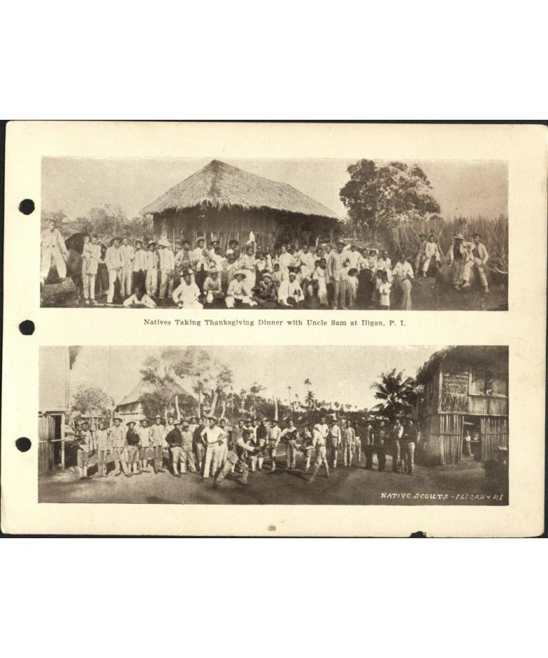 (Top) Natives taking Thanksgiving dinner with Uncle Sam at Iligan, P. I. (Bottom) Native scouts - Iligan - P. I.