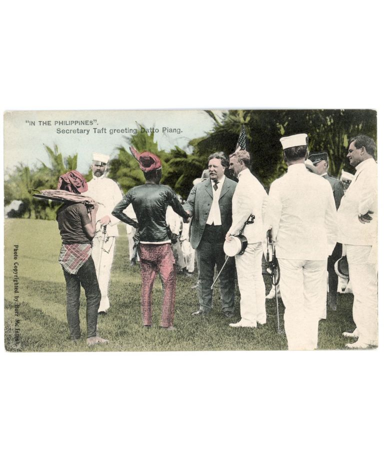 "In the Philippines." Secretary Taft greeting Datto [Datu] Piang.