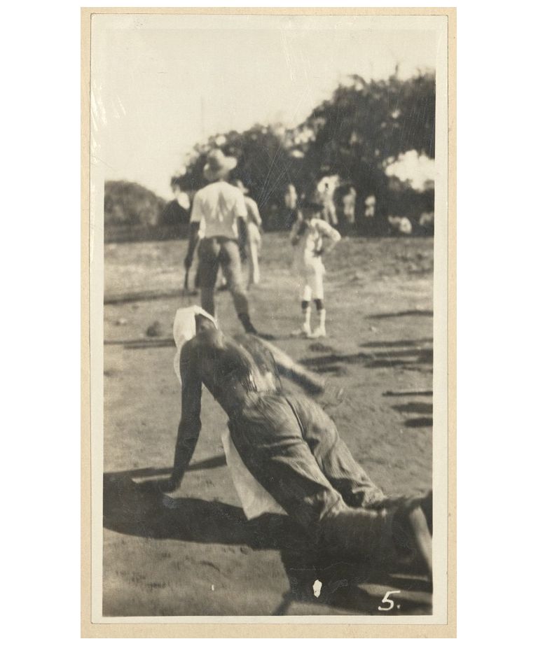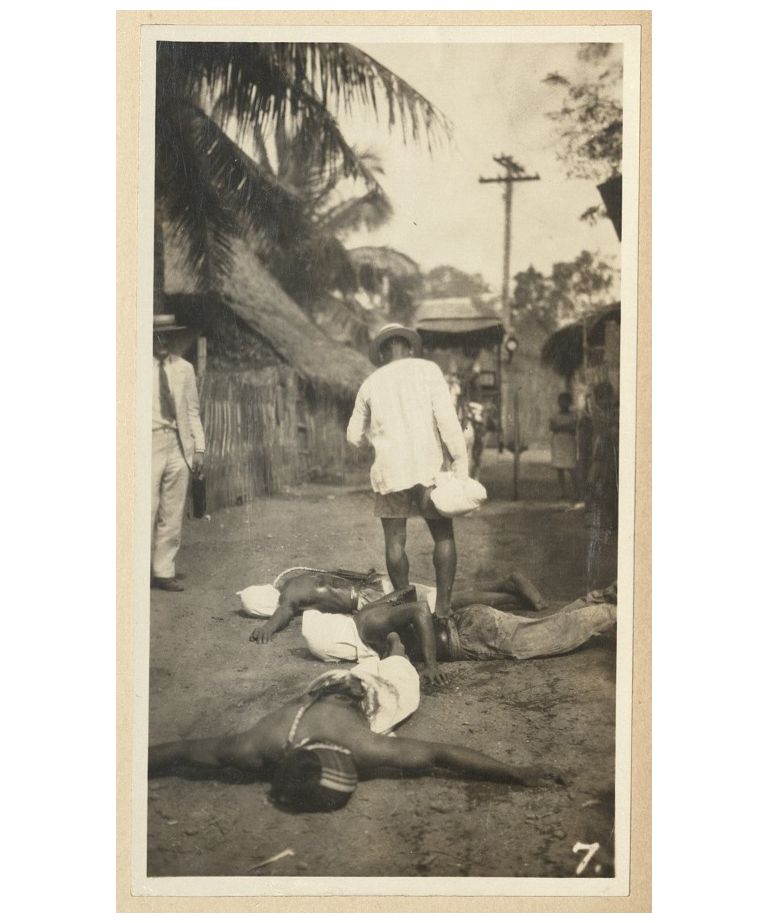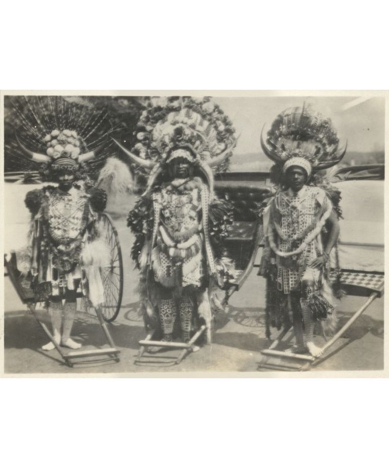 "Ifugao Igorots in their war custom [costume]. This was taken last Dec. 1932 150 miles from Bontoc P. I." [Actually - Zulu rickshaw drivers in Durban, South Africa].