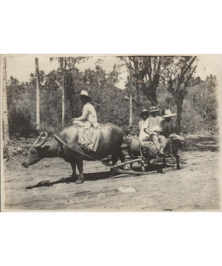 Sled drawn by carabao bringing copra to the market at Barrio Mojon, Laguna, P. I.