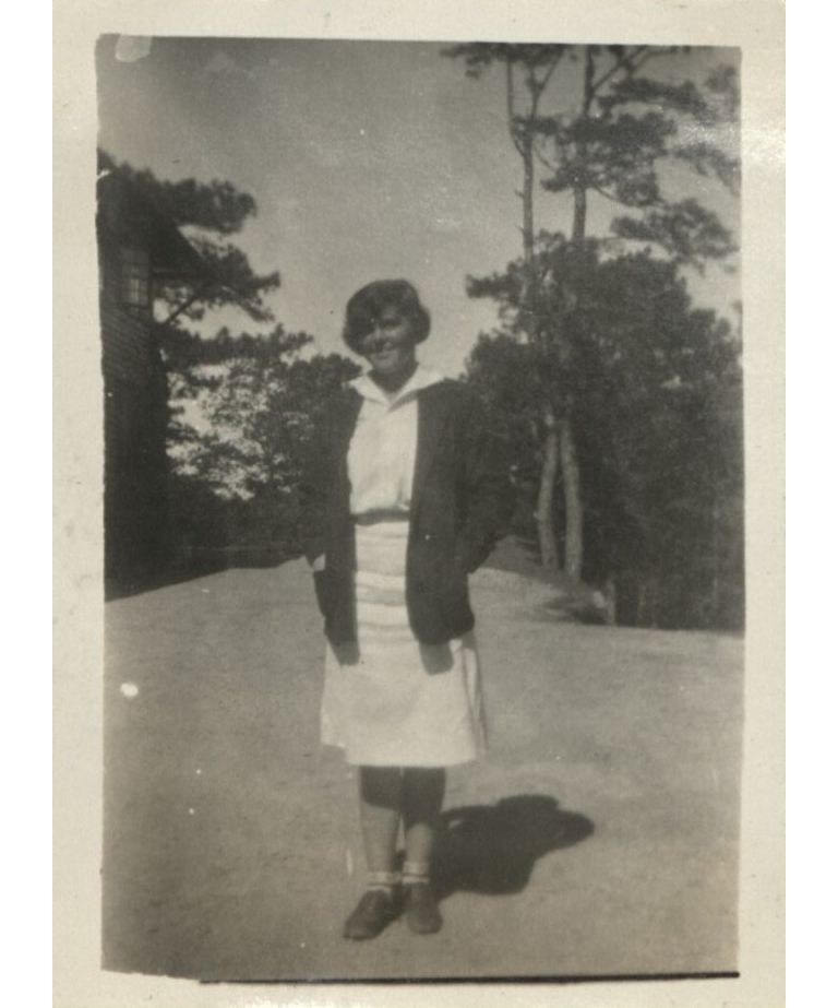 Sis [Nathelle Laing?] playing tennis at Camp John Hay.