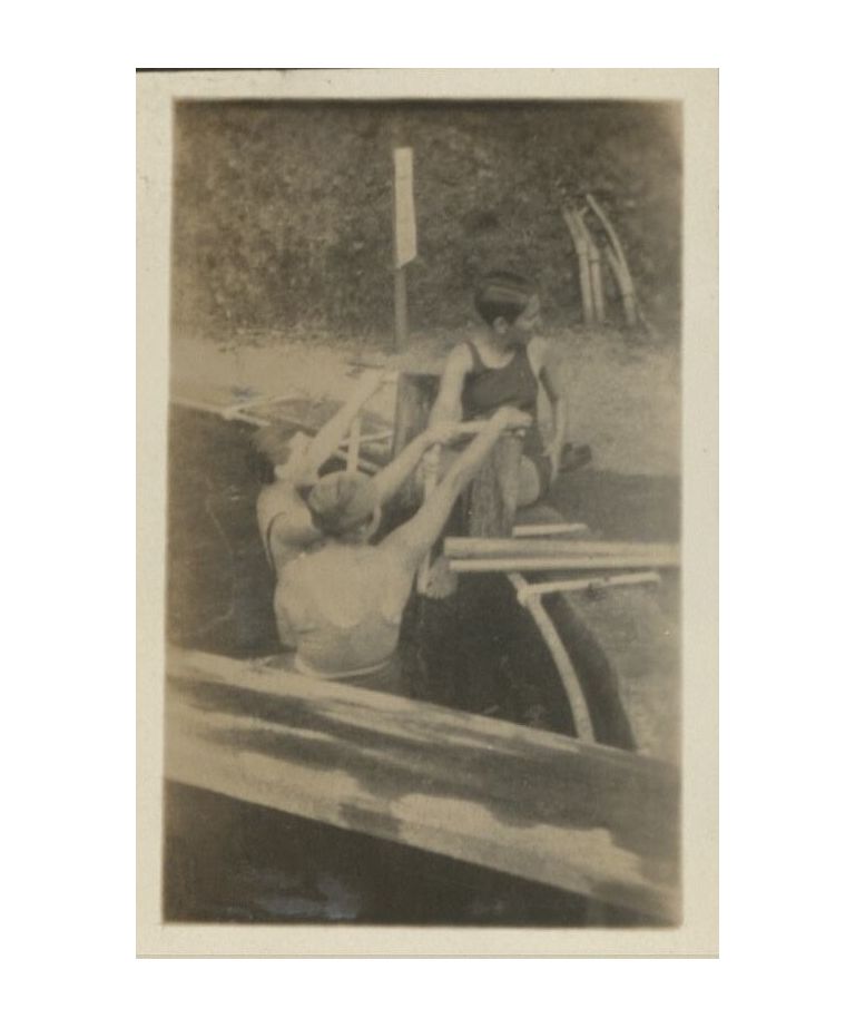 Sis [Nathelle Laing?], Sheila and Mrs. Morrison at the Antamok pool.
