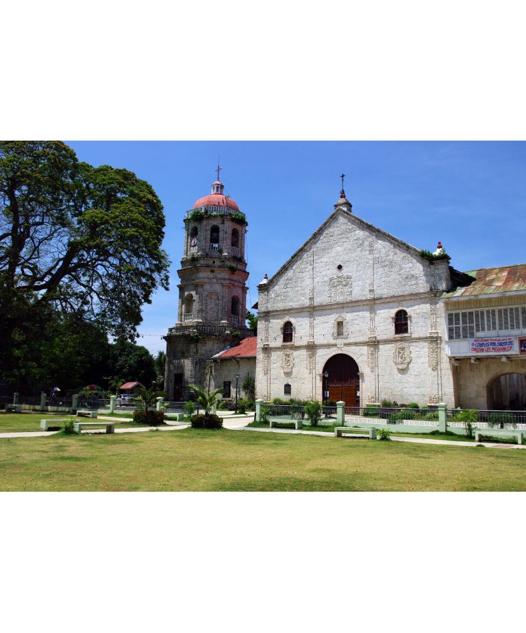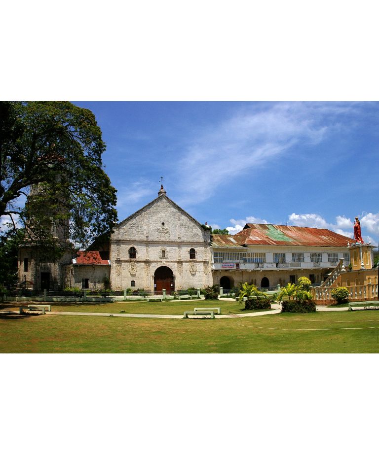 San Guillermo de Aquitania Parish Church, Dalaguete, Cebu - facade, convent, and plaza view.