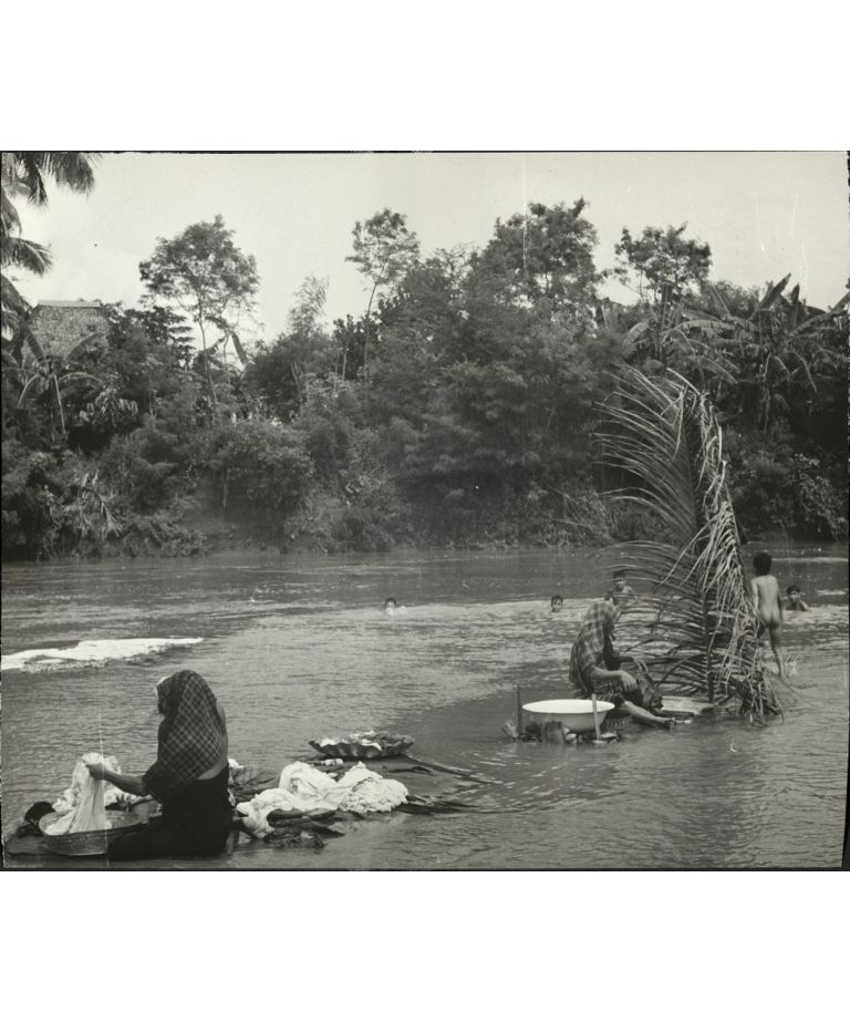 Washing clothes on the river bank at Iloilo, Island of Panay, Philippines.