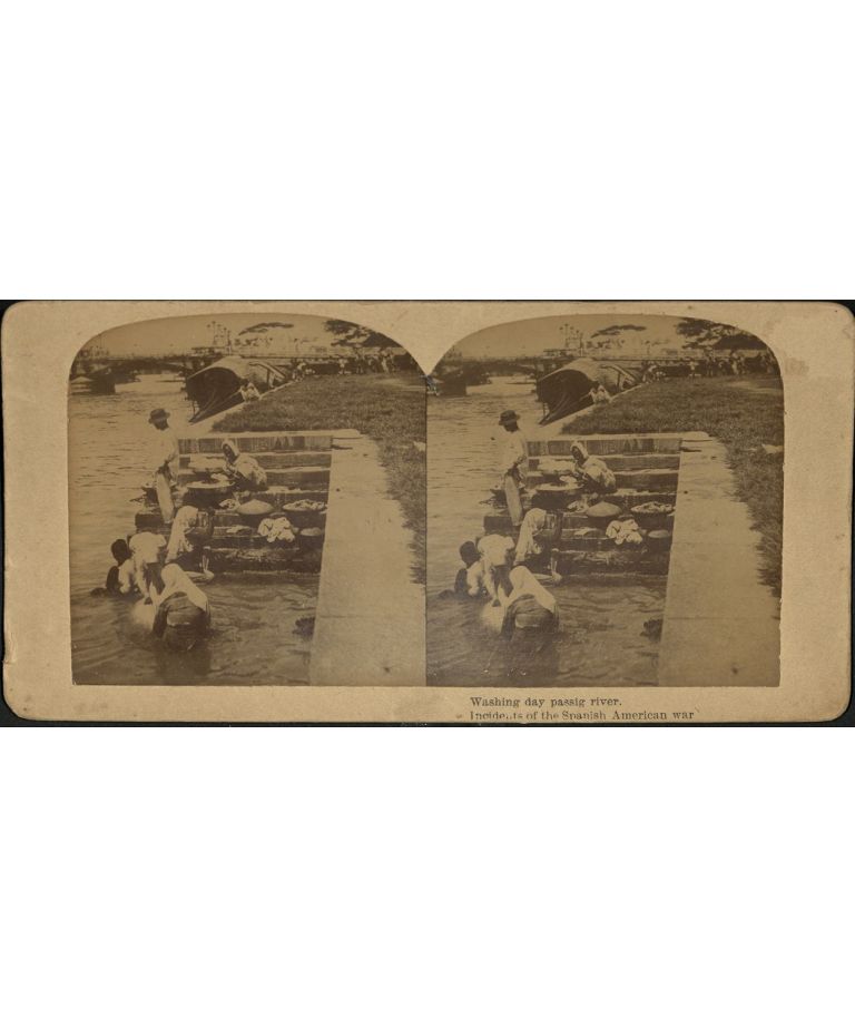 Washing day passig [Pasig] river. Incidents of the Spanish-American War.