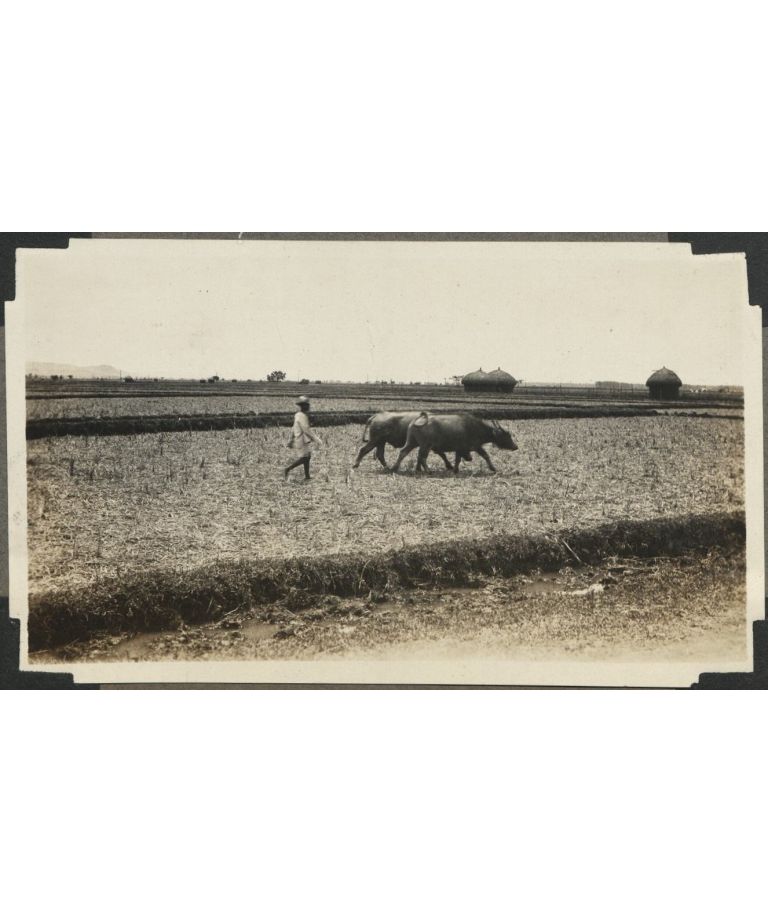 Rice paddy. Native farmer driving carabao home. The carabao is the native heavy duty animal.