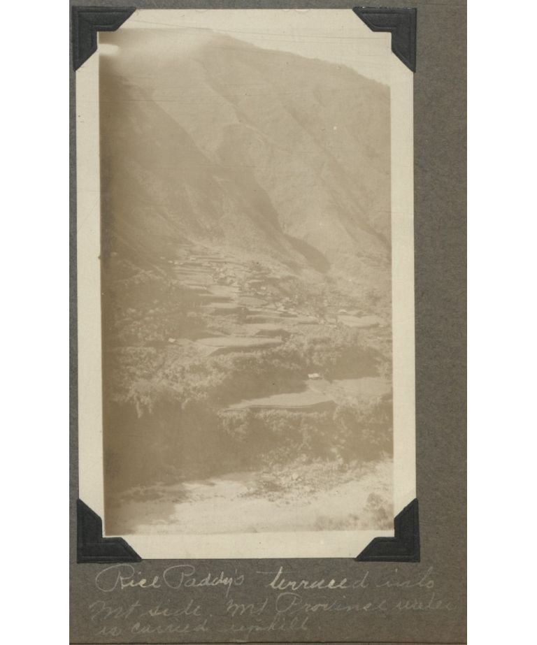 Rice paddy terraced into mt. side, Mt. Province. Water is carried uphill.