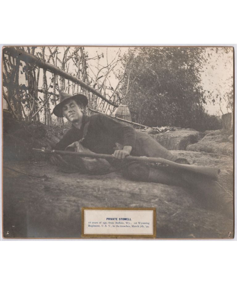 Private Stowell, 18 years of age, from Buffalo, Wy., 1st Wyoming Regiment, U.S.V. [United States Volunteers], in the trenches, March 7th, '99.