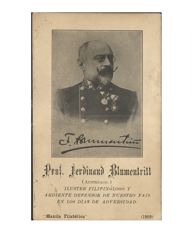 Prof. Ferdinand Blumentritt (Austriaco.) Ilustre Filipin�logo y Ardiente Defensor de Nuestro Pais en los dias de Adversidad. [Distinguished Filipinologist and ardent defender of our country in the difficult days].