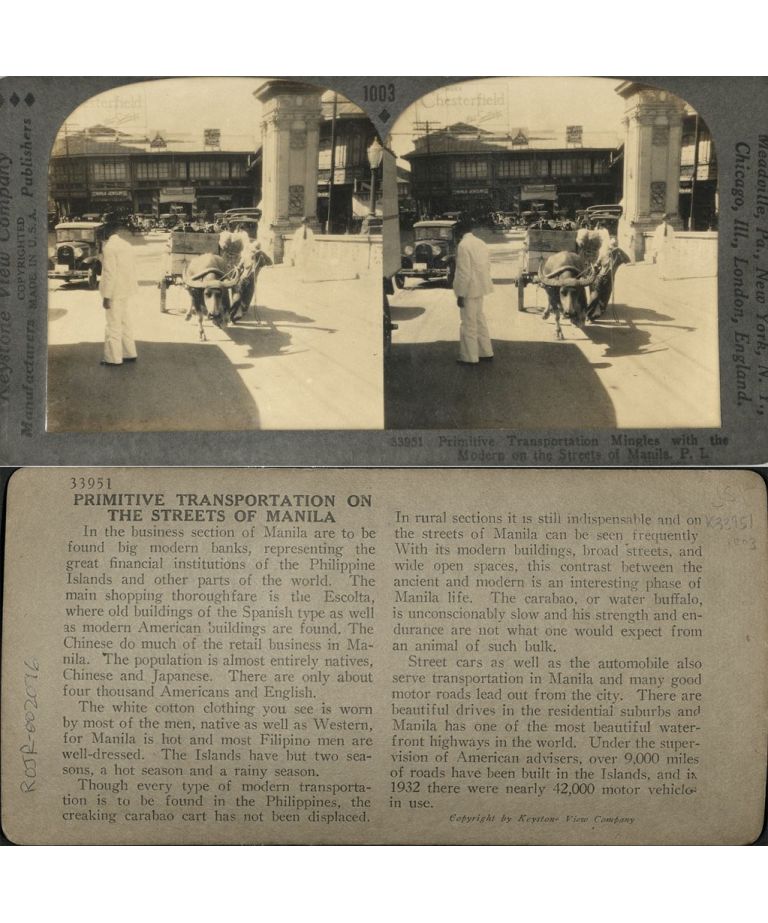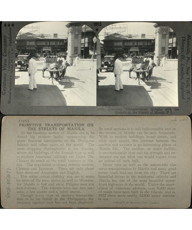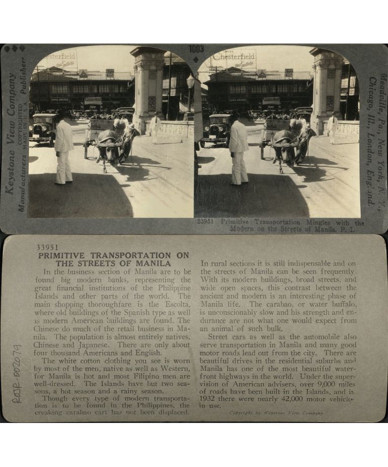 Primitive Transportation Mingles with the Modern on the Streets of Manila, P. I.