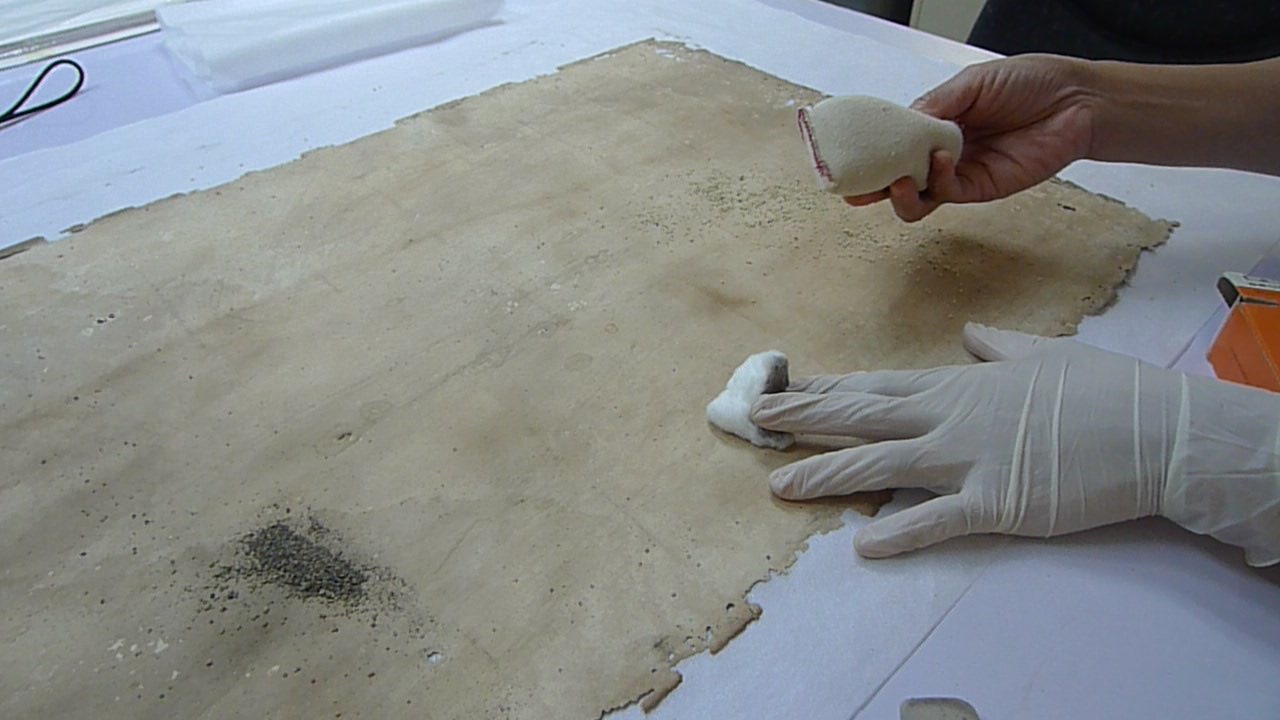 Surface cleaning, synonymously referred to as dry cleaning, is a mechanical cleaning technique used to reduce superficial soil, dust, grime, insect droppings, accretions, or other surface deposits. (Dry cleaning, as the term is used in paper conservation, does not employ the use of organic solvents.